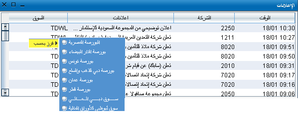 تبقيك هذه الميزة على اطلاع دائم بأحدث المعلومات عن الشركات، وبالتالي اتخاذ القرارات الإستثمارية المناسبة، وتعرض الإعلانات بطريقة موجزة في لوحة الإعلانات للسوق التي تفضلها.