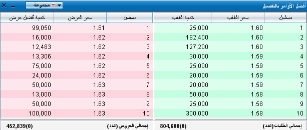 | 2. | حدد صف السهم الذي تريد عرض تفاصيل سجل الأوامر له. |