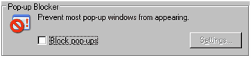 Pop-up Blocker لإنترنت إكسبلورر 6 (مع حزمة الخدمات 2) وإنتترنت إكسبلورر 7