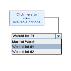 The Watch Lists lets you view a large number of stock quotes on a single window. Watch Lists are user definable and you may add symbols you wish to monitor on to the Watch List as and when required.