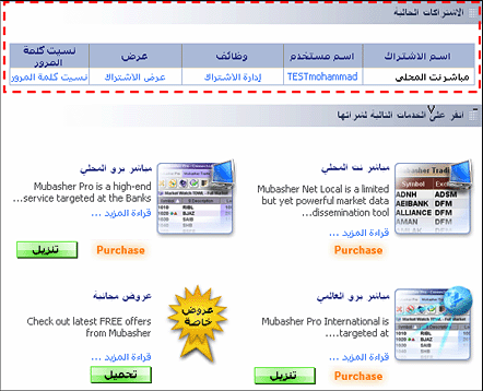 الخدمات التي اشتركت بها . |