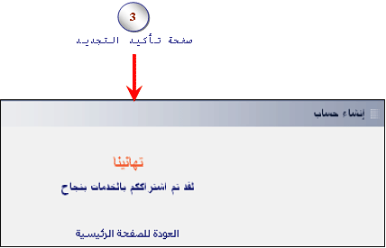 3. عند إتمام عملية التجديد بنجاح يتم تحميل صفحة تأكيد التجديد في برنامج التصفح. |